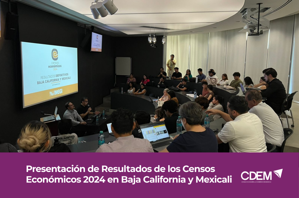 El pasado miércoles 10 de septiembre, el Consejo de Desarrollo Económico de Mexicali (CDEM) en coordinación con el Instituto Nacional de Estadística y Geografía (INEGI) llevó a cabo la presentación de los Resultados Definitivos de los Censos Económicos 2024 en el auditorio PACCAR de CETYS Universidad.