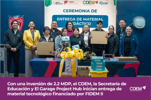 Con una inversión de 2.2 MDP, el CDEM, la Secretaría de Educación y El Garage Project Hub inician entrega de material tecnológico financiado por FIDEM II Leer más » enero 16, 2026